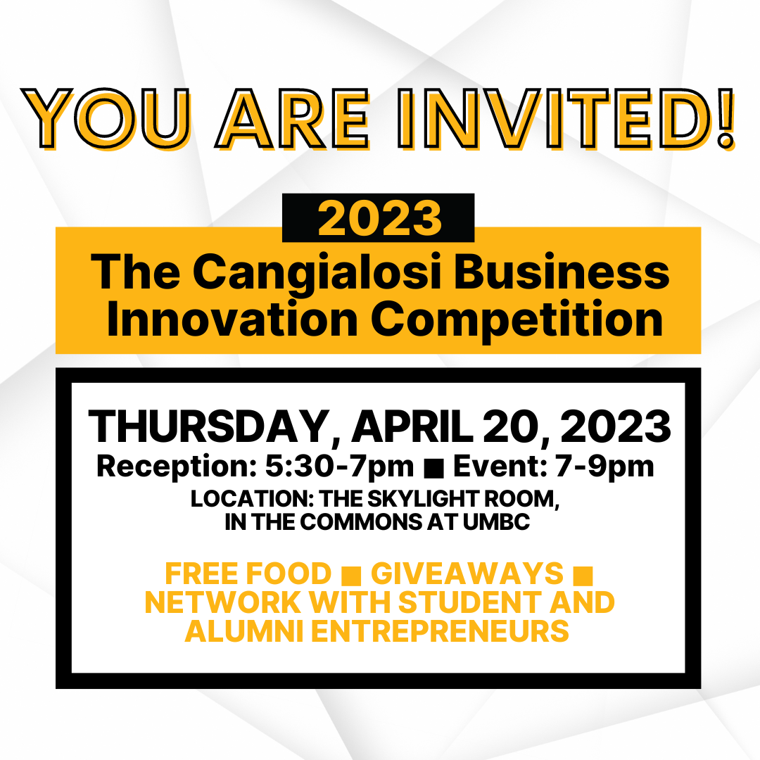 This event showcases the finalists from this year’s competition entries. The CBIC is an opportunity for UMBC students who are serious about starting a business or social impact venture to pitch their idea to a panel of judges to win money to help launch their venture.