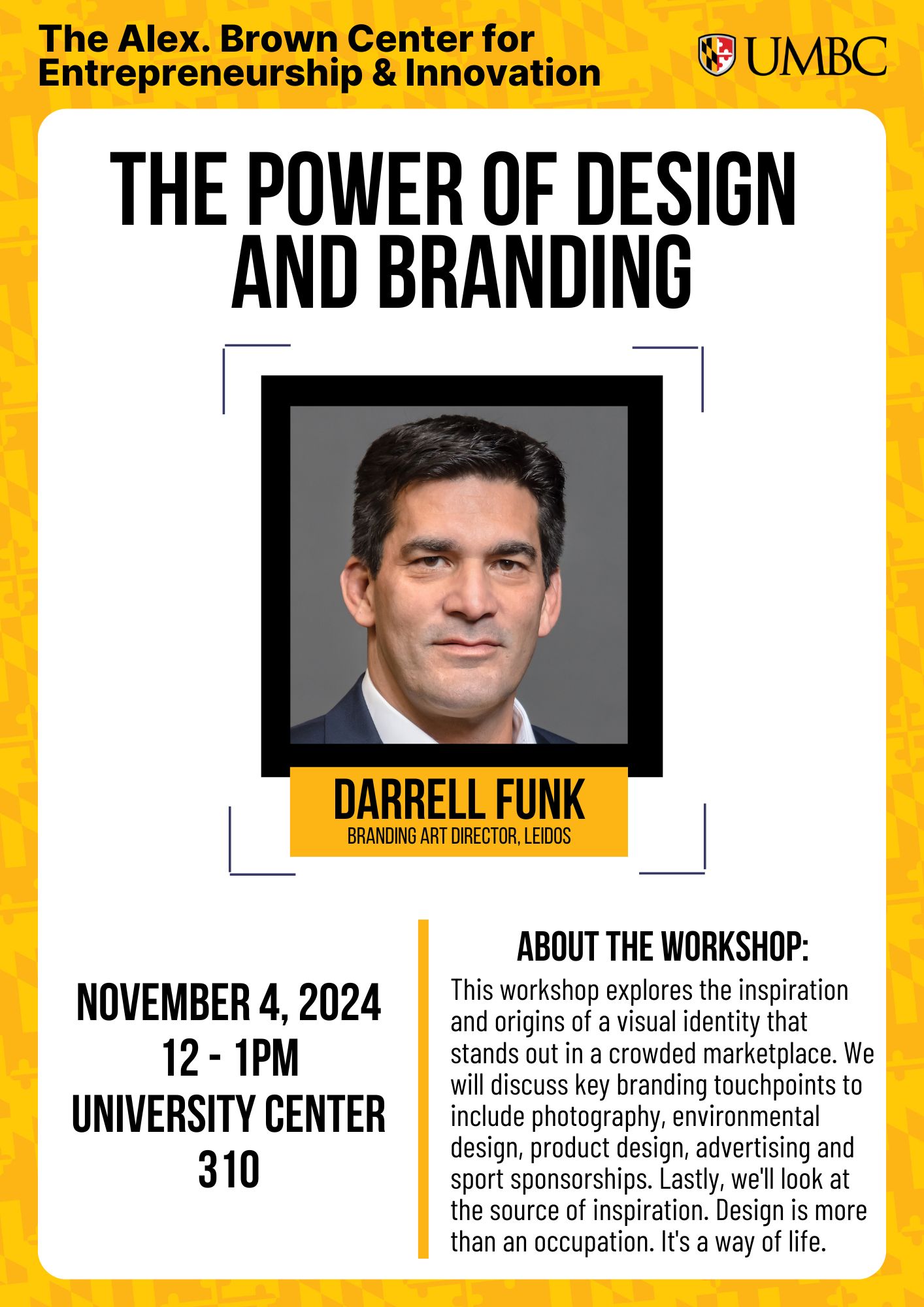 Our next event of the semester titled “The Power of Design and Branding” will be held on November 4th from 12-1pm in University Center 310.
