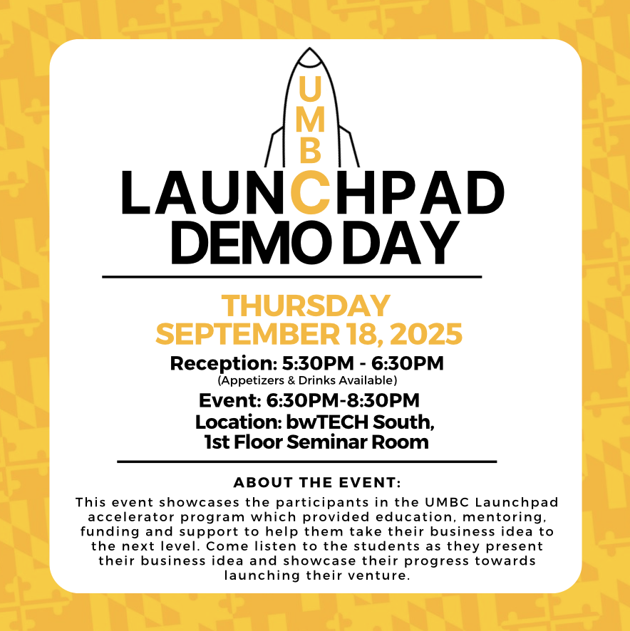 This event showcases the participants in the UMBC Launchpad accelerator program which provides education, mentoring, funding and support to help them take their business idea to the next level. Come listen to the students as they present their business idea and showcase their progress towards launching their venture.